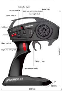 - 2.4G пълномащабна синхронна система за дистанционно управление. Функция плавна газ.