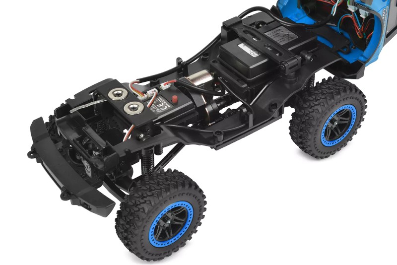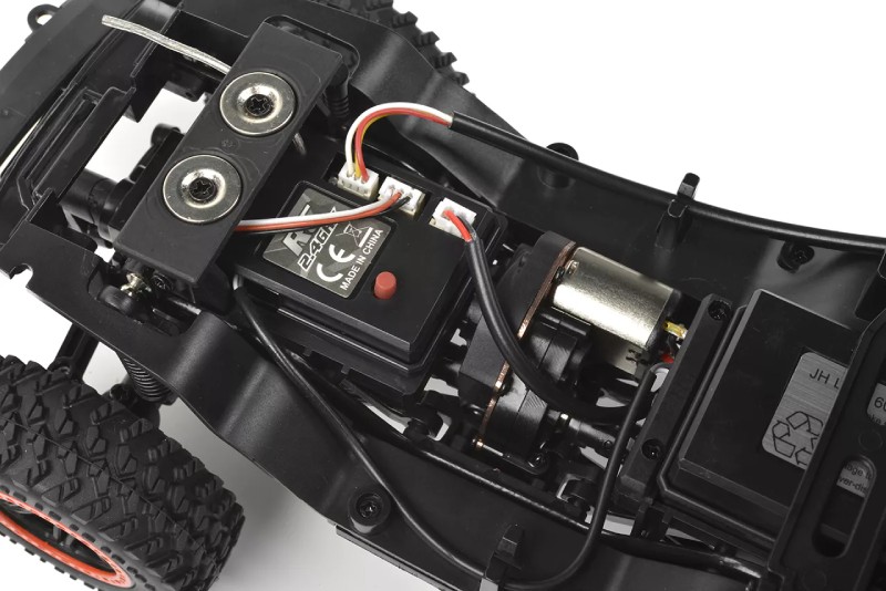 Под каросерията се намира метално шаси, точно като истински 4×4 офроуд автомобил.
