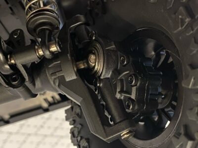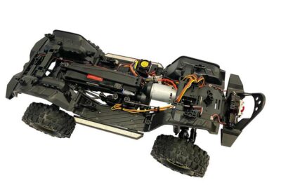 Вертикално монтираните изцяло алуминиеви маслени амортисьори осигуряват перфектно представяне на всякакъв терен. Сменяемата 2-степенна скоростна кутия позволява бавно катерене (приблизително 3 км/ч) и бързо каране (приблизително 13 км/ч). Контролерът на скоростта, който е ревизиран в сравнение с предишните версии, вече има спирачка за спускане, която не позволява на модела да се претърколи при спиране на наклон. Благодарение на универсалния държач за батерии, може да се използва почти всеки тип 2S LiPo батерия. Бодито е снабдено с LED осветление (светлинна лента, прожектор, светлина за заден ход, стоп светлина, мигачи), което може да се включва/изключва с ключ на дистанционното управление.