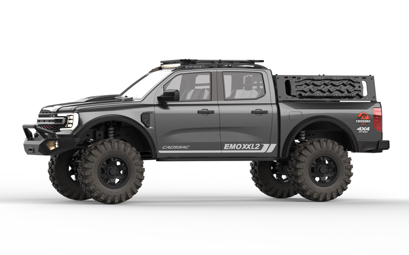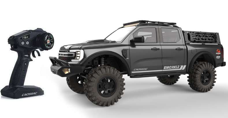 CROSSRC EMO XX2 / XXL2 е масивен безчетков 4WD/6WD офроуд пикап-монстър в мащаб 1/5 с мощен 4985V 1650kV мотор, Hobbywing 150A ESC, 70 кг серво и реалистичен дизайн с динозавърска тематика. Създаден за екстремно катерене, теглене и превъзходство върху всякакви терени (скали, кал, сняг), той е идеален за опитни потребители, търсещи хардкор производителност в голям RTR пакет. Батерията и зарядното не са включени, което позволява персонализиране с 3S–6S LiPo батерии за максимална мощност. Идеален за сериозни ентусиасти на офроуд карането!