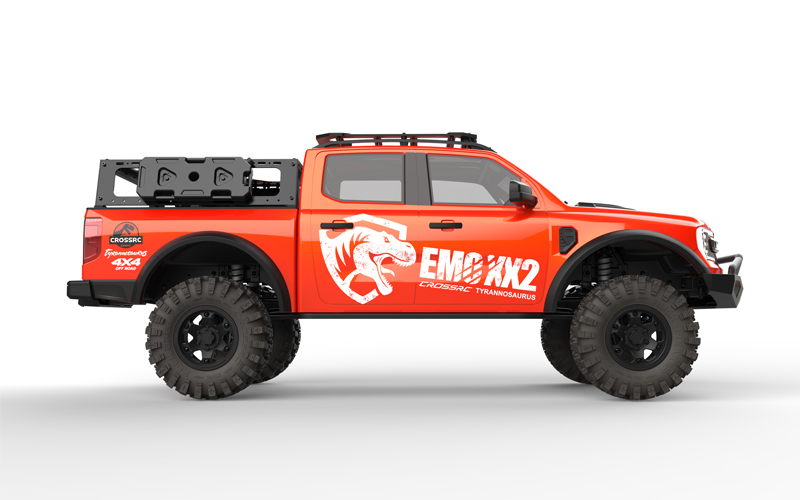 CROSSRC EMO XX2 / XXL2 е масивен безчетков 4WD/6WD офроуд пикап-монстър в мащаб 1/5 с мощен 4985V 1650kV мотор, Hobbywing 150A ESC, 70 кг серво и реалистичен дизайн с динозавърска тематика. Създаден за екстремно катерене, теглене и превъзходство върху всякакви терени (скали, кал, сняг), той е идеален за опитни потребители, търсещи хардкор производителност в голям RTR пакет. Батерията и зарядното не са включени, което позволява персонализиране с 3S–6S LiPo батерии за максимална мощност. Идеален за сериозни ентусиасти на офроуд карането!
