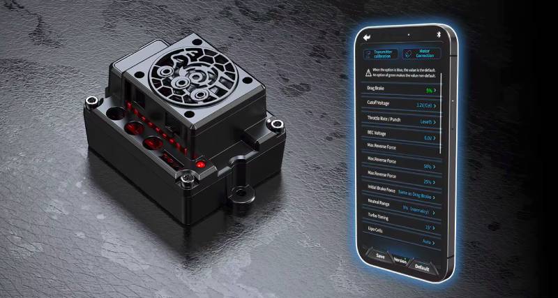 Допълнителни функции включват интегрирани предни и задни LED светлини, контролирани от дистанционното управление, и безклипсово монтиране на каросерията за лесно и бързо сваляне. Чрез Bluetooth връзка и специално приложение, потребителите могат да настройват параметрите на ESC-то в реално време, като спирачна сила и централна позиция на газта, както и да следят напрежението на батерията и температурата на ESC.