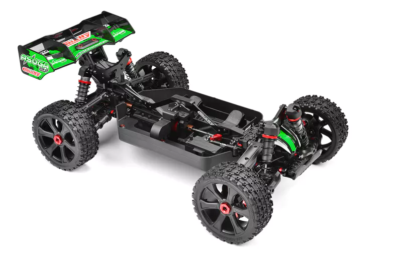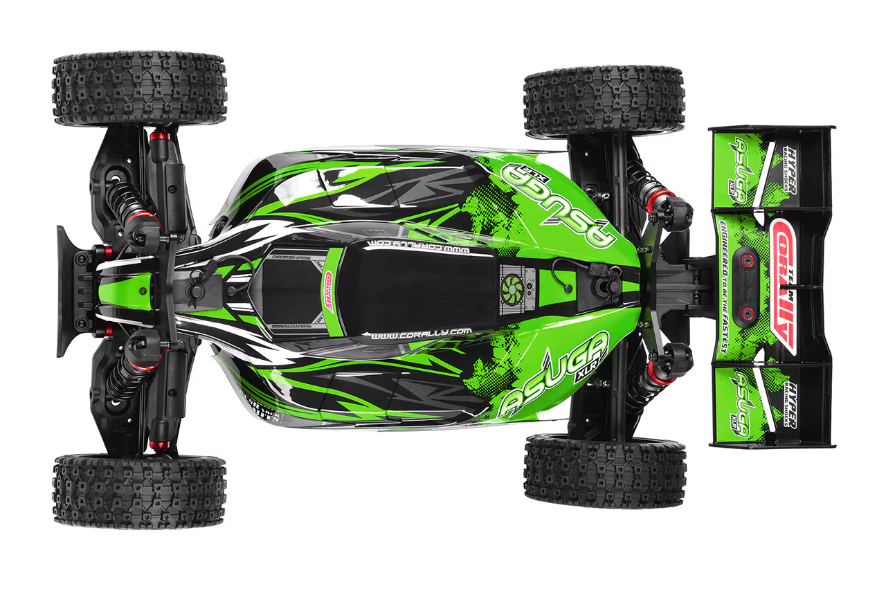 Превъзхождайки своите връстници, Asuga XLR може да се похвали с подобрен клиренс, изключителна динамика на окачването и здрави компоненти. В основата му лежи ново шаси, оборудвано с надеждната и издръжлива система за задвижване, готова за 6S, която се превърна в синоним на легендите в мащаб 1/8 на Team Corally.
