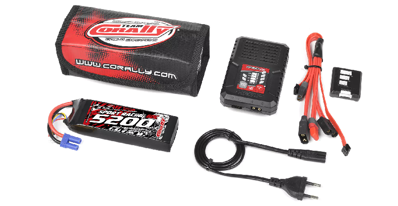 Team Corally – Energy Pack – 3s 5200MAH – 3S + Racer 50 – 2-4S AC Charger + Safety Bag + Charge-Balance Lead