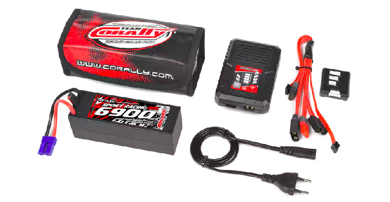 Team Corally – Energy Pack – Lipo 50C 6700Mah 4S EC-5 + Racer 50 – 2-4S AC Charger + Lipo Safety Bag + Charge-Balance Lead