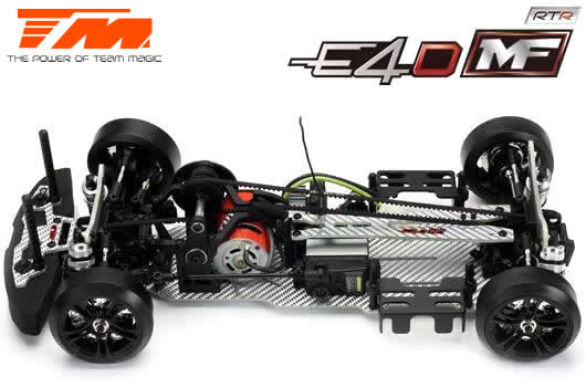 Станете професионален дрифт пилот с Team Magic E4D-MF! Дизайнът на Team Magic E4D-MF предлага перфектен баланс на теглото за по-добър контрол. Колата Team Magic E4D-MF Drift е оборудвана със специални CVD задвижващи валове отпред за увеличаване на скоростта на управление. Моделът също така предлага опция за противозавиване в трансмисионния център за регулиране на индивидуалните обороти отпред или отзад. Предлага се напълно оборудван със сачмени лагери за свободно движение.
